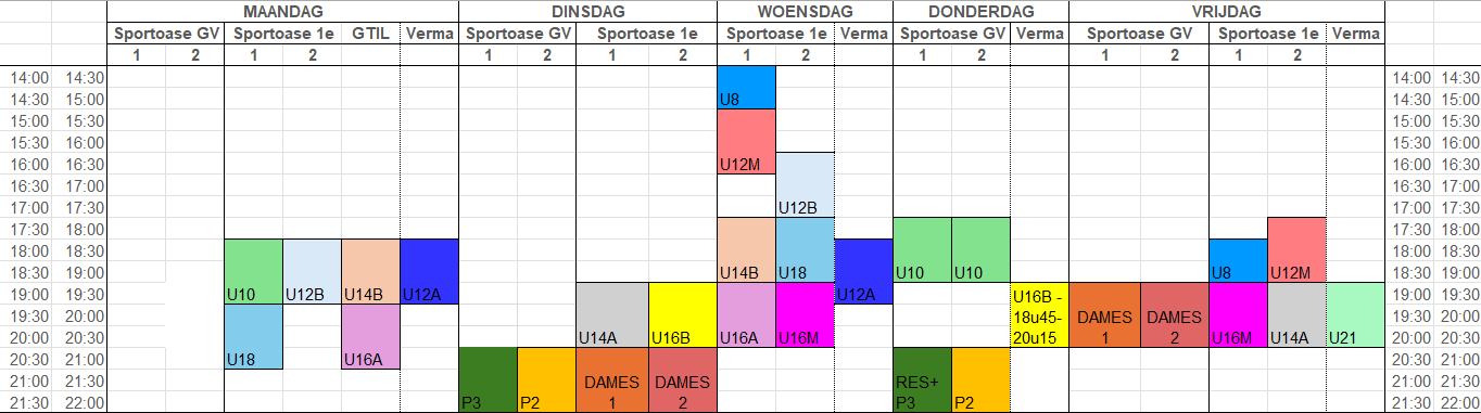 Het schema met de trainingsuren hieronder. Indien er nog wijzigingen zouden zijn dan worden de spelers daarvan vooraf verwittigd. Je kan ze dan uiteraard hier terugvinden.
